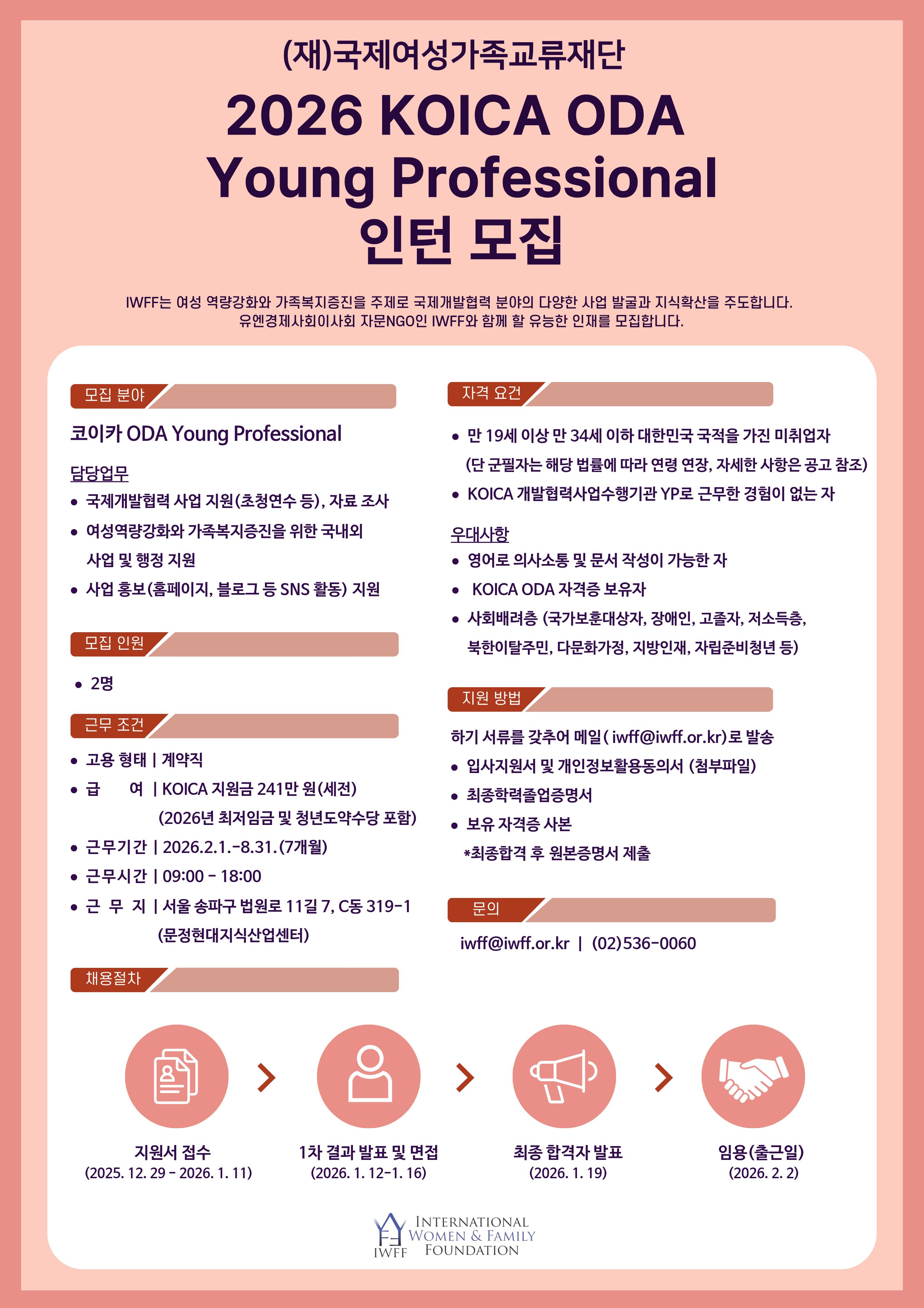 [Recruitment] 국제여성가족교류재단 2026 상반기 KOICA ODA Young Professional 인턴 모집